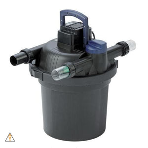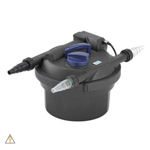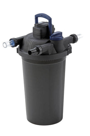 The OASE FiltoClear Series offers industry-leading, all-in-one pressurized pond filtration ideal for medium to large water features, including fountains, pond-free waterfalls, formal spillways, and traditional water gardens. Each unit in this family delivers mechanical and biological filtration alongside a powerful ultraviolet clarifier (UVC) — all in a compact, impact-resistant body that can be discreetly buried and camouflaged with the optional FiltoCap rock cover.