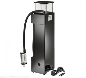 Finding a skimmer that will fit in the back chambers of an AIO aquarium can be challenging, but Innovative Marine's NuvoSkim DC has a small form factor and gives great results. The DC powered pump and the needle wheel impeller creates copious amounts of bubbles that get sent through a bubble plate to help eliminate turbulence. The low profile cup barely sticks out of the backside of the tank allowing you to monitor it, without needing to move the skimmer.