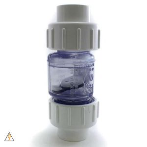Check valves allow single-directional water flow and are used to prevent back siphoning. They are commonly used on return pump outputs to prevent water overflowing the sump in the event of a power outage, pump failure or maintenance.