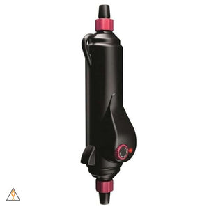 Unique external heater for aquariums, designed to be plumbed into the line for external canister filters or sumps.
