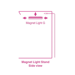 Magnet Light G can be installed (by attaching to the inside of the top ceiling panel) of the Magnet Light Stand by using the built-in magnet of the Magnet Light G.