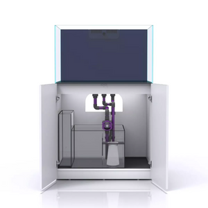The sump included is simple, yet highly flexible. Nylon filter sock(s) are included to remove larger debris or uneaten fish food. In the second chamber, you'll find room for multiple devices such as a skimmer, media reactor, or algae reactor. With a constant water level of approx. 8", it's ideal for most protein skimmers.
